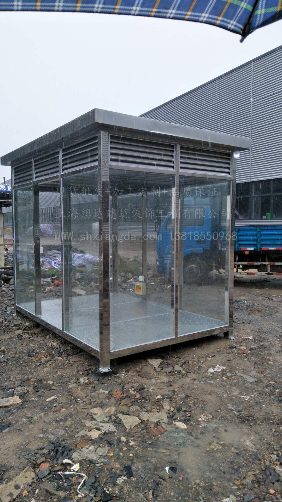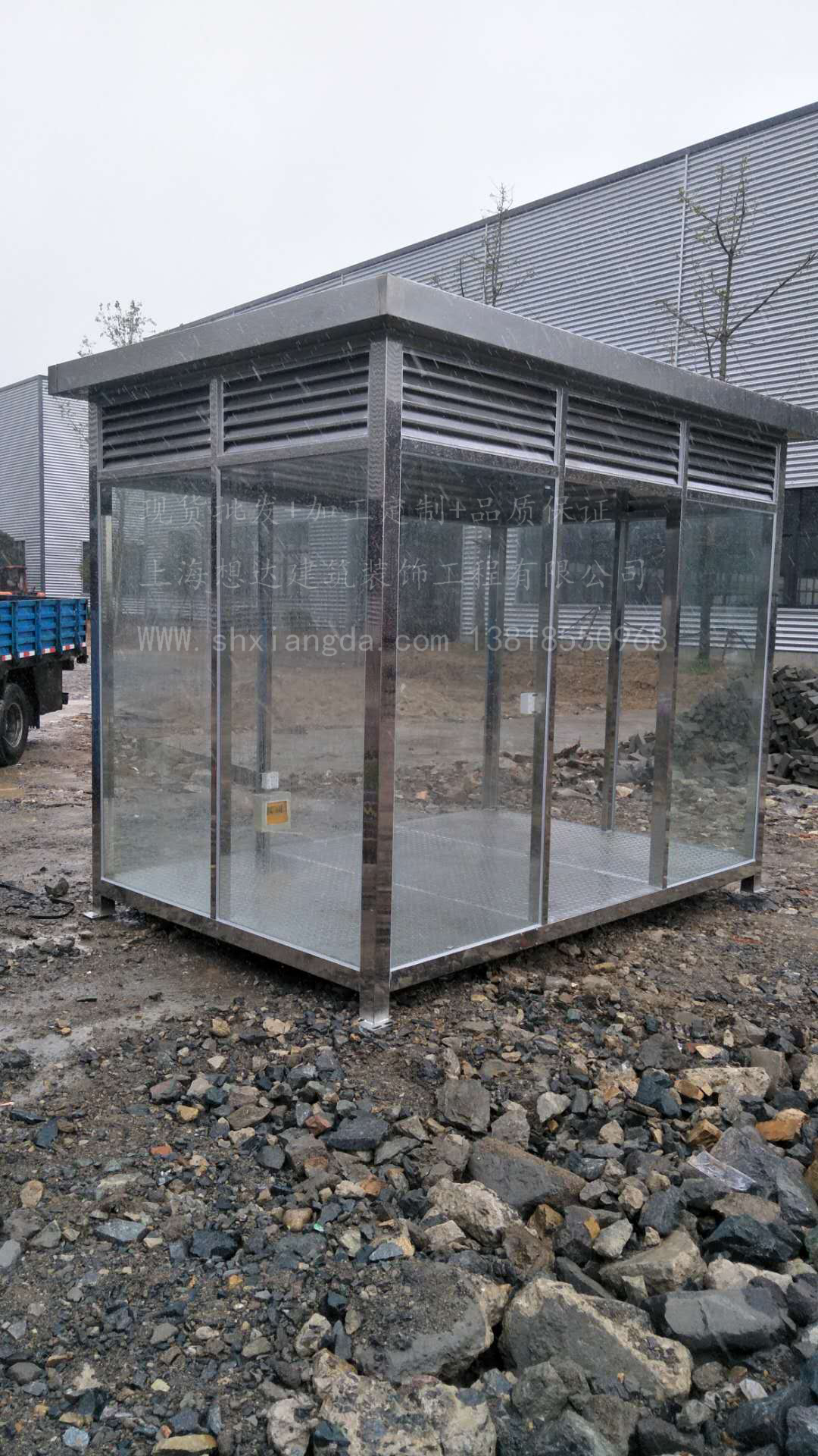 貨物尺寸:長(zhǎng)2米寬3米高2.6米制作工藝:立柱采用80*80*2.0 304 不銹方管制作而成,墻體采用10mm鋼化玻璃,耐風(fēng)壓,通風(fēng)采用不銹鋼百葉,結(jié)實(shí)耐用。